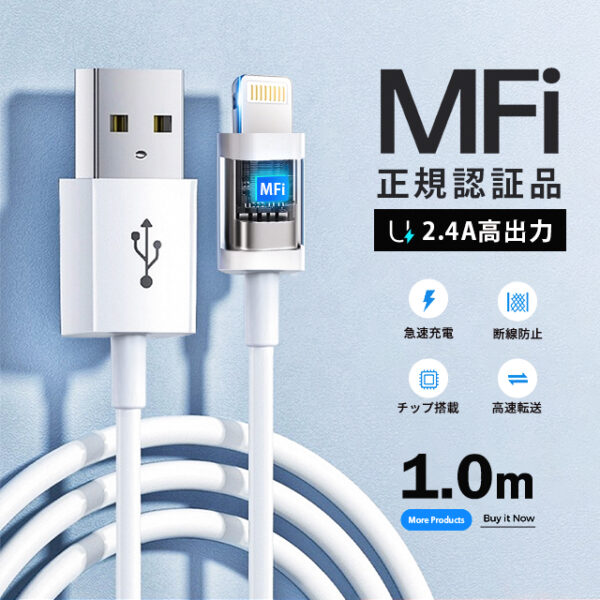 ■Apple(アップル)認証済のMFIケーブルなので、充電時のエラーメッセージが出る心配なし。